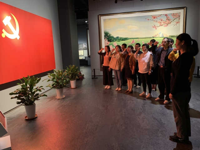 随后,全体党员到龙华烈士纪念馆参观进行参观。龙华烈士纪念馆坐落在龙华烈士陵园内,共分为“序厅”、“信仰的召唤”、“使命的执着”、“信念的坚守”“民族的脊梁”、“胜利的奋争”、“时代的先锋和仰望”等八个部分。纪念馆以“英雄之城孕育英雄,英雄精神激励后人”为主题,通过照片、实物、及多种先进的陈展技术为载体,集中展示了256位英雄人物的生平事迹。在展览过程中,不时吸引了老师们驻足观看,学习讨论。在鲜红的党旗面前,支部成员重温了入党誓词,作出了为共产主义奋斗终身的庄严承诺。最后,全体党员在纪念馆一楼红色讲堂聆听了一堂《牺牲在黎明前夜的革命者》微党课。