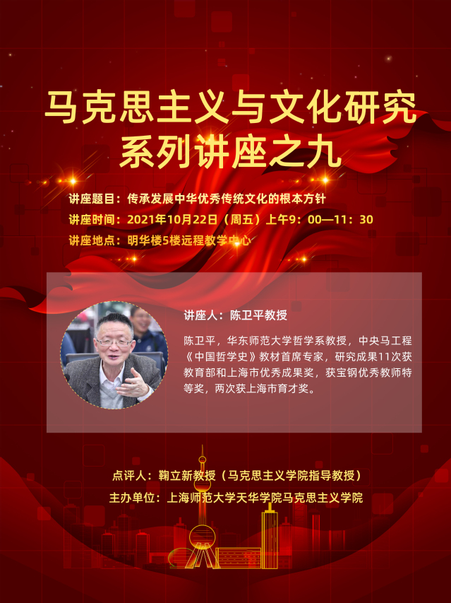 讲座预告:马克思主义与文化研究(九)——陈卫平:传承和发展中华优秀传统文化的根本发展