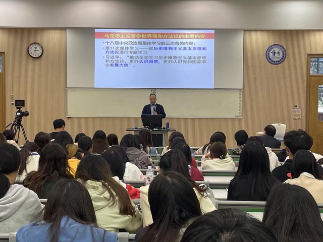 为深入贯彻学习党的教育方针,落实立德树人根本任务,扎实推进习近平新时代中国特色社会主义思想进课堂、进教材、进头脑,11月3日下午,英国正版365首页邀请上海师范大学英国正版365首页教授、博士生导师石书臣来校讲授“习近平新时代中国特色社会主义思想”示范课。活动由我院沈尚武副教授主持,副院长丁彩霞、思政课教师及130余名学生及参与了本次学习活动。