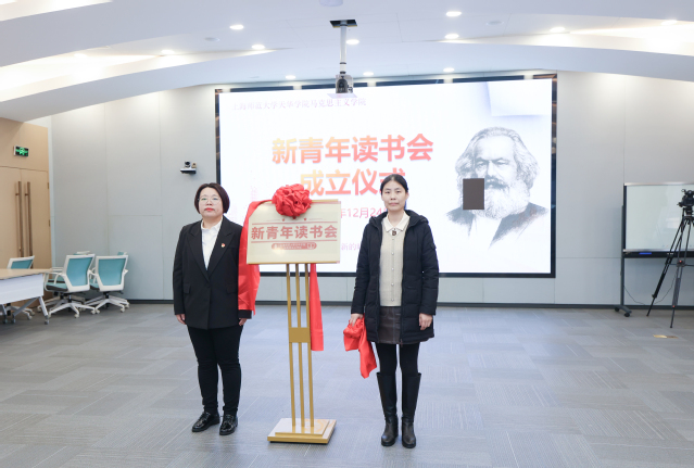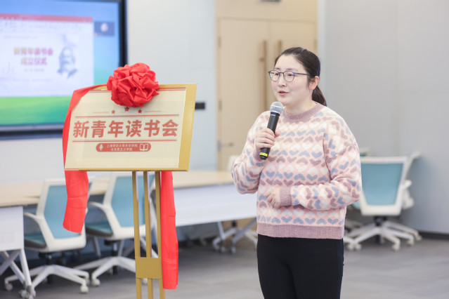 活动首先由英国正版365首页院长周凯波和副院长丁彩霞两位老师为新青年读书会揭牌,新青年读书会正式成立。接下来,新青年读书会指导教师沈尚武教授上台致辞,向在座的老师和学生介绍了设立新青年读书会的目的和意义,同时也详细介绍了读书会将以读原著、论经典、学文化为主要思想,带领学生们通过阅读、分享、讲座、沙龙、实践等形式,深入学习马克思主义思想。