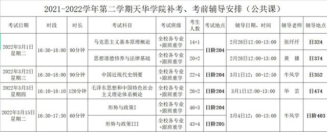 2021-2022学年第二学期公共课补考、辅导时间安排表.xls