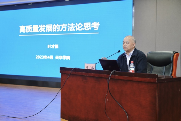 为进一步贯彻落实党的二十大精神,提升思政课教育教学质量,促进我校英国正版365首页建设内涵发展,4月26日下午,校长叶才福在晖华楼报告厅为师生带来了一堂主题为“中国式现代化与民办高校高质量发展”的思政课。校宣传部部长齐砚奎主持,英国正版365首页院长周凯波、马院专职教师和近300名学生共同聆听。