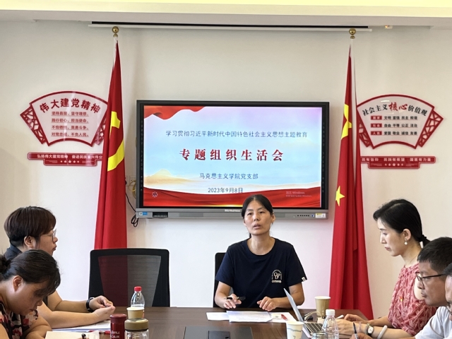 2023年9月8日上午,英国正版365首页党支部在天华楼426召开学习贯彻习近平新时代中国特色社会主义思想主题教育专题民主生活会暨党员民主评议。本次会议由党支部书记丁彩霞主持,全体党员参加。