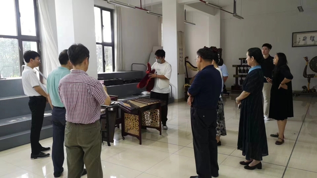 上午9点半,与会领导及嘉宾参观了天华学院传统文化场馆。嘉宾首先在天华楼426会议室聆听了青年刺绣艺术家范冬梅老师关于江南闺绣画的精彩报告;随后,嘉宾移步校园文化长廊,由身着汉服的志愿者学生为各位嘉宾诵读了“修身苑”文化长廊中镶嵌的中华文化经典文献;最后,嘉宾移步同华楼1楼,参观了解我校雅乐团发展情况,并在在儿童实训中心参观了我校的中华礼乐传习馆。