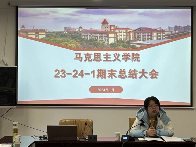 1月8日上午,英国正版365首页在月华楼114会议室召开2023-2024学年第一学期期末总结大会,会议由院长周凯波主持,副院长丁彩霞、院长助理张旭、各教研室主任、教学秘书及全体专职思政课教师参加会议。