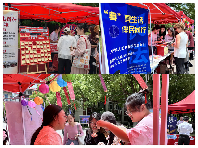 2024年5月29日,在初夏微风中,英国正版365首页成功举办了一场别开生面的“有料集市”宣传活动,旨在通过寓教于乐的方式,让思政选修课《走进民法典》《伟大建党精神在上海》及《中国传统节日与习俗》走进学生的日常生活,激发学生对思政学习的兴趣与热情。