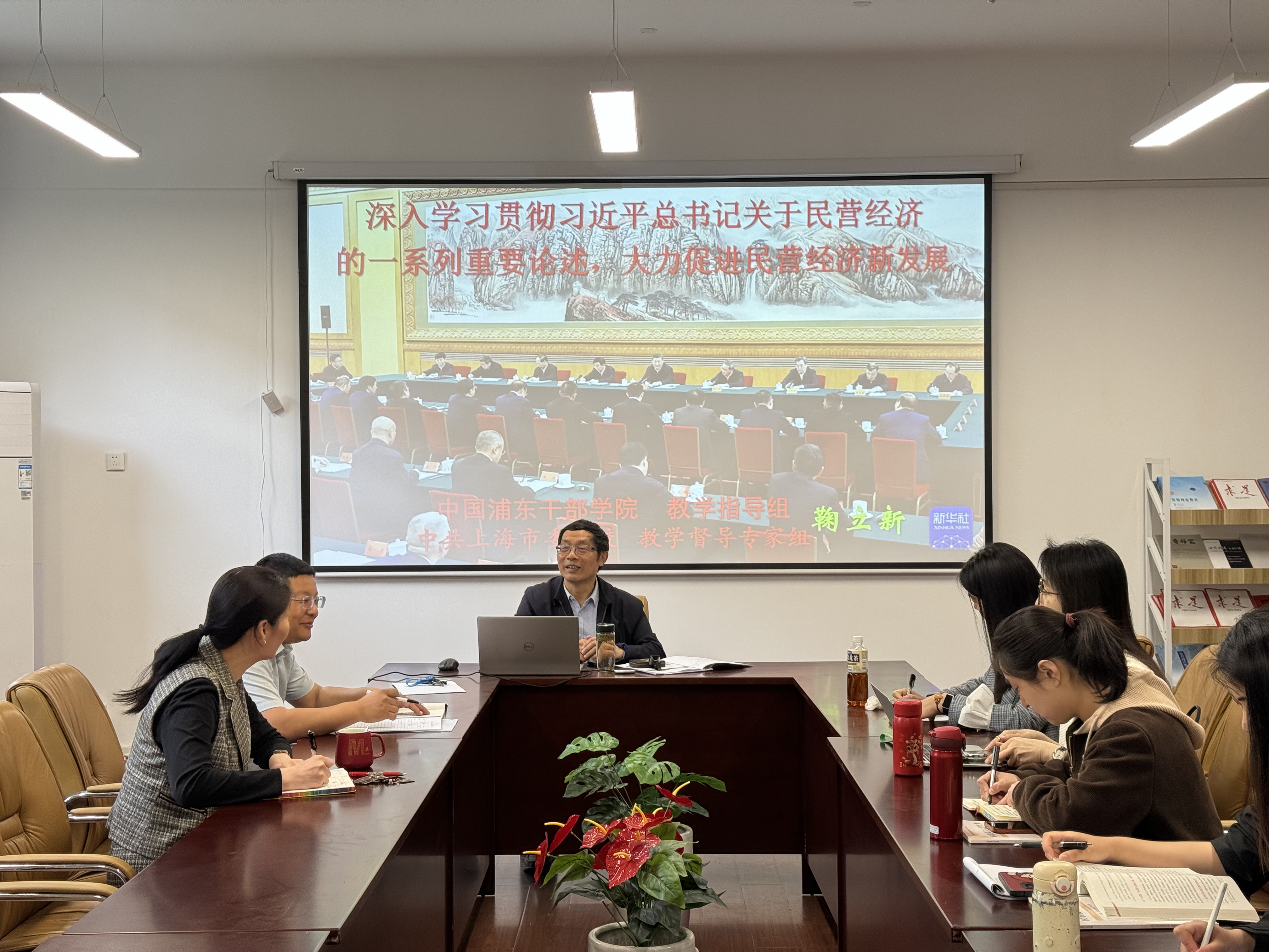 2025年4月11日上午,中共上海市委党校鞠立新教授应邀在月华楼114会议室作了题为《深入学习贯彻习近平总书记关于民营经济的一系列重要论述,大力促进民营经济新发展》的学术讲座。此次讲座由形势与政策教研室主任牛风学主持并总结,部分专任教师参加,英国正版365首页副院长丁彩霞出席了此次备课会。