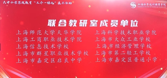 2025年7月8日,我院院长助理张旭、教师李晓晨参加了由上海市嘉定区教育工作委员会指导、上海科技技术职业学院主办的“上海市大中小学思政教育‘三个一体化’展示活动”。活动中,李晓晨老师作为本科学段代表,进行了题为《弘扬劳动精神,恪守职业道德:感性认同-理性辨析-身体力行》的说课展示,分享了大学阶段思政教育的实践与思考。