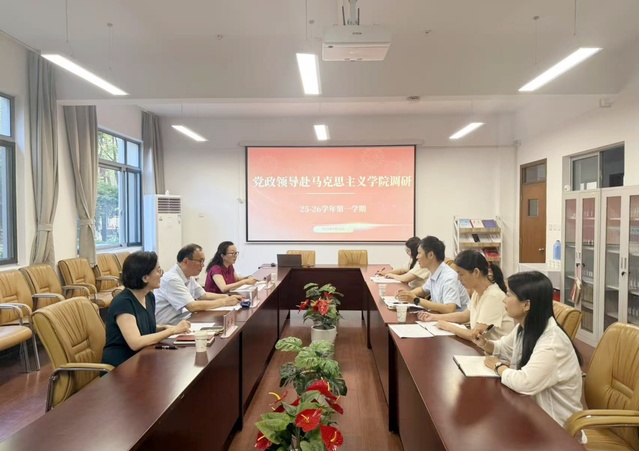 2025年9月16日,学校党委书记高建华和党委副书记、校长龚春蕾赴英国正版365首页开展专题调研指导工作,党委副书记许岳参与调研。英国正版365首页院长刘天翔、副院长丁彩霞、院长助理张旭以及各教研室主任和骨干教师代表参加调研座谈会。