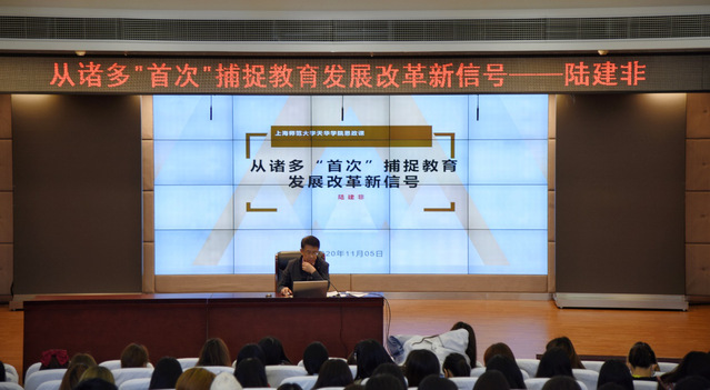 为深入贯彻落实习近平总书记在学校思想政治理论课教师座谈会上的重要讲话精神,具体落实好“学校党委书记、校长带头走进课堂,带头推动思政课建设”实际行动。2020115日下午,我校党委书记陆建非以“从诸多‘首次’捕捉教育发展改革信号”为题,在晖华楼小剧场为2020级青年学生们讲授专题思政课。本场讲座由思政课教师贾孟云主持,英国正版365首页副院长丁彩霞、部分马院青年教师及学生300余人共同聆听。