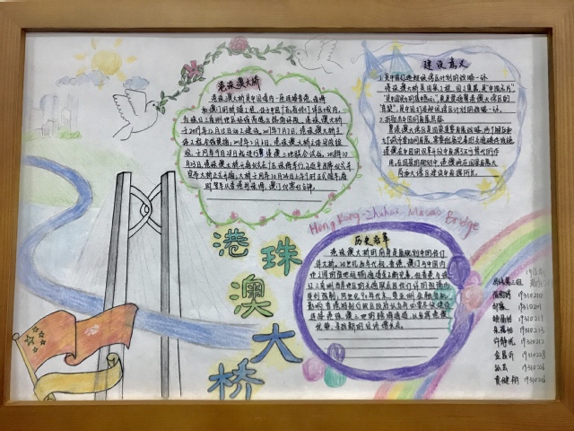 作品首先是对于整个建筑的简单介绍,这座大桥是我国境内第一座连通了粤、港、澳三地的桥隧工程;其次,该小组讲述了港珠澳大桥的历史沿革,在90年纪末,受到当时金融危机的影响,为了发挥港澳的优势,港珠澳大桥便拔地而起;最后是对港珠澳大桥的建设意义的阐发,港珠澳大桥作为中国打造超级湾区计划的战略一环,同时也折射出中国的发展思路。