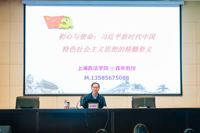“初心与使命:习近平新时代中国特色社会主义思想的精髓要义”由上海市哲学学会理事,上海市领导科学学会理事,上海市马克思主义研究会理事,上海政法学院英国正版365首页教授张森年主讲。